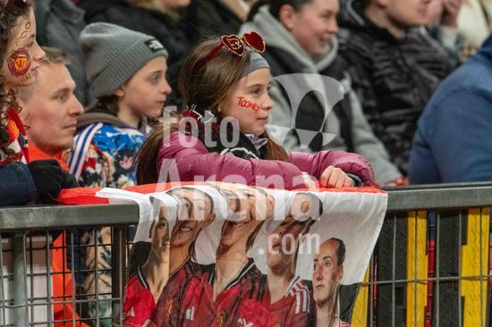 2911718 MANCHESTER, INGLATERRA - 25 DE MARCO Torcedores do Manchester United durante o jogo das quartas de final da Liga Feminina da UEFA entre Manchester United e Bayern de Munique, em Old Trafford, em 25 de marco de 2026, em Manchester, Inglaterra (Foto de Clare Overfield/Sports Press Photo) (Clare Overfield / SPP)