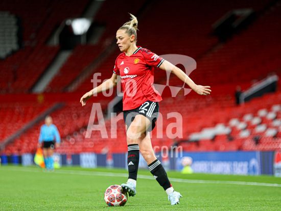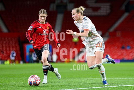 2912037 MANCHESTER, INGLATERRA - 25 de marco: Lisa Naalsund, do Manchester United, com a bola durante a partida da Liga dos Campeoes Feminina da UEFA entre Manchester United e Bayern de Munique, no Old Trafford, em Manchester, Inglaterra. (Natalie Mincher/SPP)