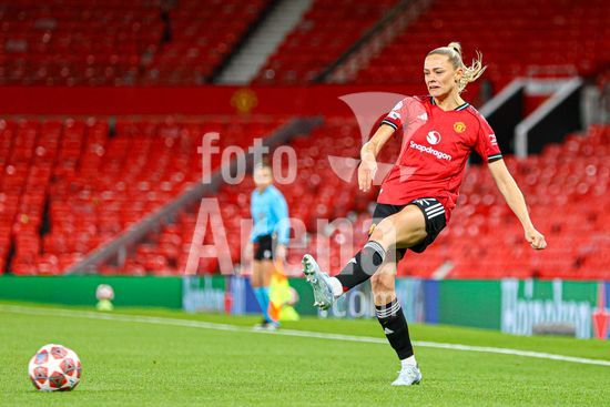 2912035 MANCHESTER, INGLATERRA - 25 de marco: Lisa Naalsund, do Manchester United, cruza a bola durante a partida da Liga dos Campeoes Feminina da UEFA entre Manchester United e Bayern de Munique, no Old Trafford, em Manchester, Inglaterra. (Natalie Mincher/SPP)
