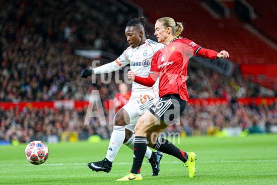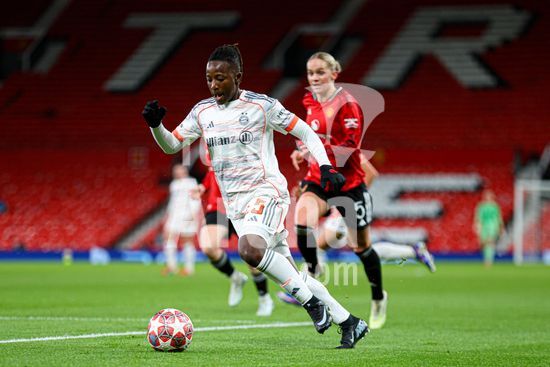2912023 MANCHESTER, INGLATERRA - 25 de marco: Bernadette Amani, do Bayern de Munique, com a bola durante a partida da Liga dos Campeoes Feminina da UEFA entre Manchester United e Bayern de Munique, no Old Trafford, em Manchester, Inglaterra. (Natalie Mincher/SPP)
