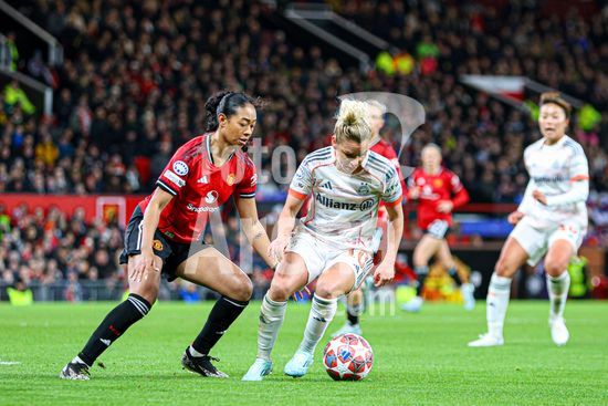 2911727 MANCHESTER, INGLATERRA - 25 de marco: Melvine Malard, do Manchester United, com a bola durante a partida da Liga dos Campeoes Feminina da UEFA entre Manchester United e Bayern de Munique, no Old Trafford, em Manchester, Inglaterra. (Natalie Mincher/SPP)