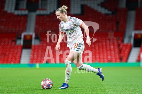 2912001 MANCHESTER, INGLATERRA - 25 de marco: Franziska Kett, do Bayern de Munique, com a bola durante a partida da Liga dos Campeoes Feminina da UEFA entre Manchester United e Bayern de Munique, no Old Trafford, em Manchester, Inglaterra. (Natalie Mincher/SPP)