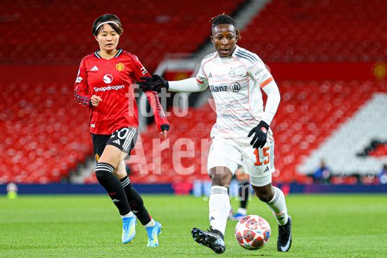 2912004 MANCHESTER, INGLATERRA - 25 de marco: Bernadette Amani, do Bayern de Munique, com a bola durante a partida da Liga dos Campeoes Feminina da UEFA entre Manchester United e Bayern de Munique, no Old Trafford, em Manchester, Inglaterra. (Natalie Mincher/SPP)