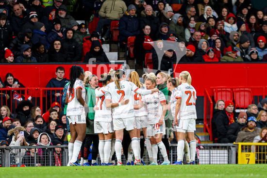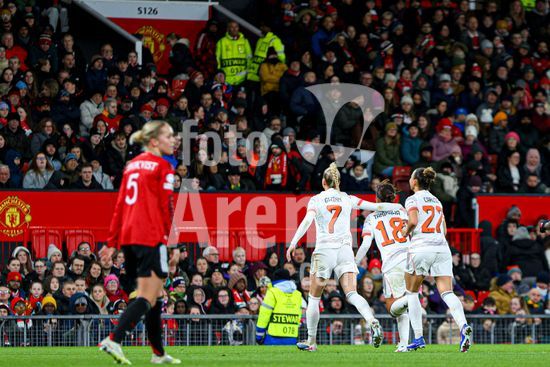 2912038 MANCHESTER, INGLATERRA - 25 de marco: Maya Le Tissier, do Manchester United, comemora apos empatar a partida em um penalti durante o jogo da Liga dos Campeoes Feminina da UEFA entre Manchester United e Bayern de Munique, no Old Trafford, em Manchester, Inglaterra. (Natalie Mincher/SPP)
