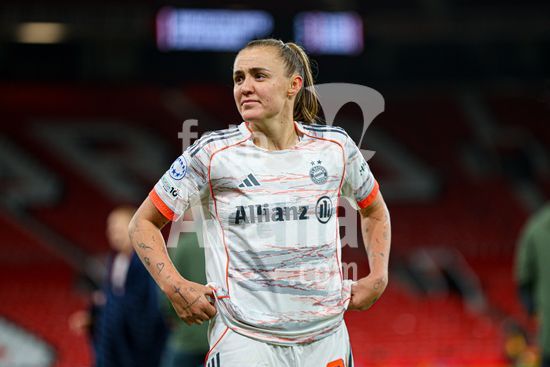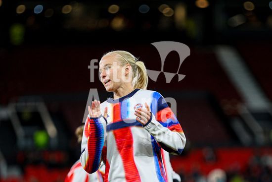 2912045 MANCHESTER, INGLATERRA - 25 de marco: Glodis Viggosdottir, do Bayern de Munique, apos o apito final da partida da Liga dos Campeoes Feminina da UEFA entre Manchester United e Bayern de Munique, no Old Trafford, em Manchester, Inglaterra. (Natalie Mincher/SPP)