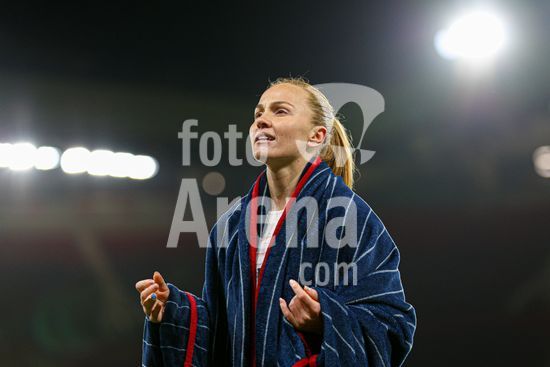 2912060 MANCHESTER, INGLATERRA - 25 de marco: Georgia Stanway, do Bayern de Munique, apos o apito final da partida da Liga dos Campeoes Feminina da UEFA entre Manchester United e Bayern de Munique, no Old Trafford, em Manchester, Inglaterra. (Natalie Mincher/SPP)