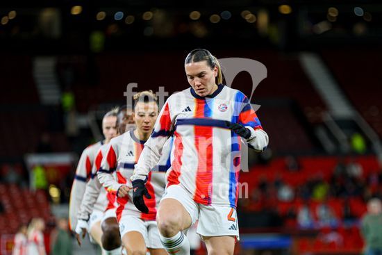 2912048 MANCHESTER, INGLATERRA - 25 de marco: Jogadoras do Bayern de Munique se aquecem durante a partida da Liga dos Campeoes Feminina da UEFA entre Manchester United e Bayern de Munique no Old Trafford, em Manchester, Inglaterra. (Natalie Mincher/SPP)