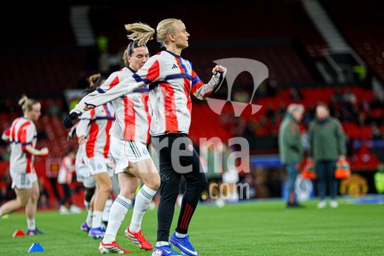 2912063 MANCHESTER, INGLATERRA - 25 de marco: Pernille Harder, do Bayern de Munique, se aquece durante a partida da Liga dos Campeoes Feminina da UEFA entre Manchester United e Bayern de Munique, no Old Trafford, em Manchester, Inglaterra. (Natalie Mincher/SPP)
