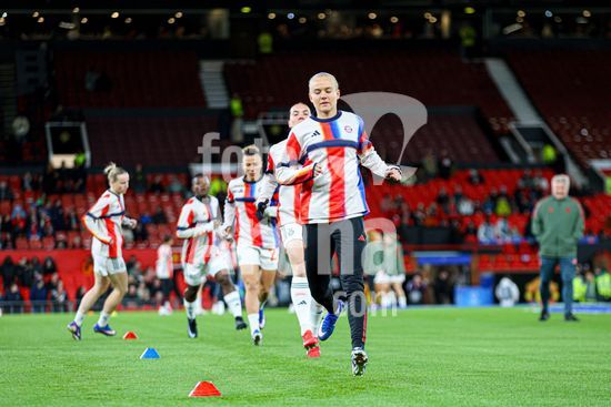 2912050 MANCHESTER, INGLATERRA - 25 de marco: Georgia Stanway, do Bayern de Munique, se aquece durante a partida da Liga dos Campeoes Feminina da UEFA entre Manchester United e Bayern de Munique, no Old Trafford, em Manchester, Inglaterra. (Natalie Mincher/SPP)