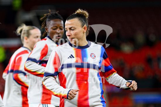 2912049 MANCHESTER, INGLATERRA - 25 de marco: Franziska Kett, do Bayern de Munique, se aquece durante a partida da Liga dos Campeoes Feminina da UEFA entre Manchester United e Bayern de Munique, no Old Trafford, em Manchester, Inglaterra. (Natalie Mincher/SPP)