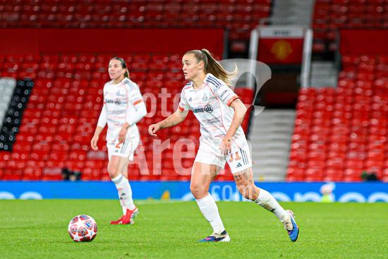 2911709 MANCHESTER, INGLATERRA - 25 de marco: Linda Dallmann, do Bayern de Munique, com a bola durante a partida da Liga dos Campeoes Feminina da UEFA entre Manchester United e Bayern de Munique, no Old Trafford, em Manchester, Inglaterra. (Natalie Mincher/SPP)