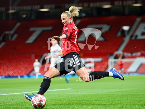 2912058 MANCHESTER, INGLATERRA - 25 de marco: Maya Le Tissier, do Manchester United, em acao durante a partida da Liga dos Campeoes Feminina da UEFA entre Manchester United e Bayern de Munique, no Old Trafford, em Manchester, Inglaterra. (Natalie Mincher/SPP)