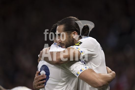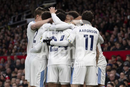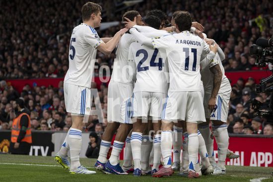 2924199 MANCHESTER, INGLATERRA - 13 DE ABRIL: Noah Okafor, do Leeds United, comemora com seus companheiros de equipe apos marcar o segundo gol do time durante a partida da Premier League 2025/26 entre Manchester United e Leeds United, no Old Trafford, em Manchester, em 13 de abril de 2026. (Will Palmer/SPP)