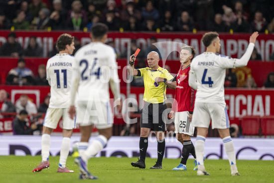 2924201 MANCHESTER, INGLATERRA - 13 DE ABRIL: O arbitro Paul Tierney expulsa Lisandro Martinez, do Manchester United, durante uma partida da Premier League 2025/26 entre Manchester United e Leeds United no Old Trafford, em Manchester, em 13 de abril de 2026. (Will Palmer/SPP)