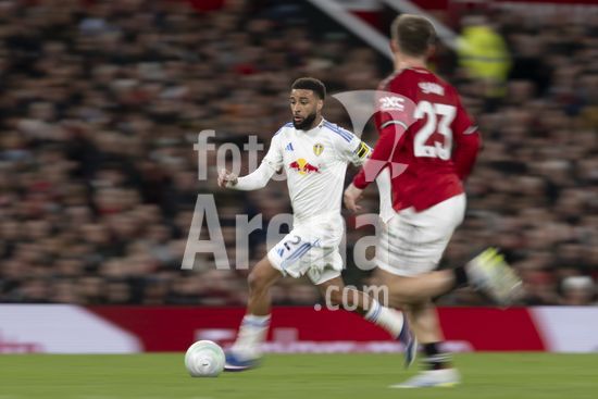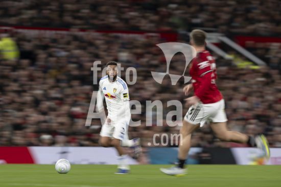 2924230 MANCHESTER, INGLATERRA - 13 DE ABRIL: Jayden Bogle, do Leeds United, corre com a bola durante uma partida da Premier League 2025/26 entre Manchester United e Leeds United no Old Trafford, em Manchester, em 13 de abril de 2026. (Will Palmer/SPP)