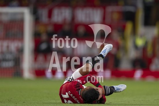 2924206 MANCHESTER, INGLATERRA - 13 DE ABRIL: Casemiro, do Manchester United, reage durante uma partida da Premier League 2025/26 entre Manchester United e Leeds United no Old Trafford, em Manchester, em 13 de abril de 2026. (Will Palmer/SPP)