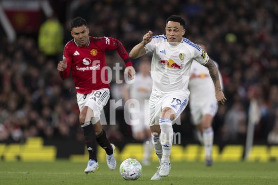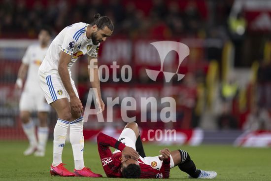 2924212 MANCHESTER, INGLATERRA - 13 DE ABRIL: Dominic Calvert-Lewin, do Leeds United, ajuda Casemiro, do Manchester United, durante uma partida da Premier League 2025/26 entre Manchester United e Leeds United no Old Trafford, em Manchester, em 13 de abril de 2026. (Will Palmer/SPP)