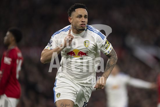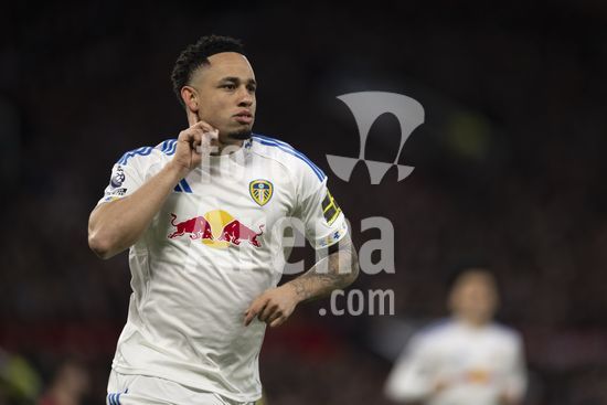 2924211 MANCHESTER, INGLATERRA - 13 DE ABRIL: Noah Okafor, do Leeds United, comemora apos marcar o segundo gol da equipe durante a partida da Premier League 2025/26 entre Manchester United e Leeds United, no Old Trafford, em Manchester, em 13 de abril de 2026. (Will Palmer/SPP)