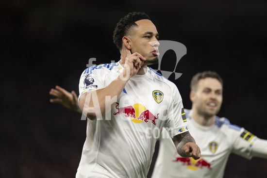2924200 MANCHESTER, INGLATERRA - 13 DE ABRIL: Noah Okafor, do Leeds United, comemora apos marcar o segundo gol da equipe durante a partida da Premier League 2025/26 entre Manchester United e Leeds United, no Old Trafford, em Manchester, em 13 de abril de 2026 (Will Palmer/SPP)