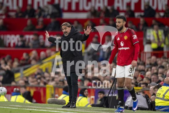 2924231 MANCHESTER, INGLATERRA - 13 DE ABRIL: Daniel Farke, treinador do Leeds United, gesticula durante uma partida da Premier League 2025/26 entre Manchester United e Leeds United no Old Trafford, em Manchester, em 13 de abril de 2026. (Will Palmer/SPP)