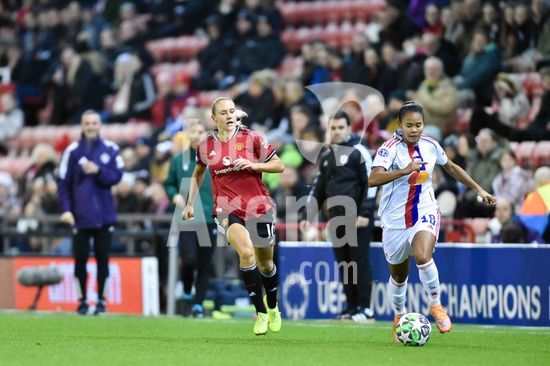 2857478 Alice Sombath (18 OL Lyonnes) controla a bola durante a partida da UWCL entre Manchester United e OL Lyonnes no Progress with Unity Stadium, em Manchester, Inglaterra. (Clare Overfield / SPP)