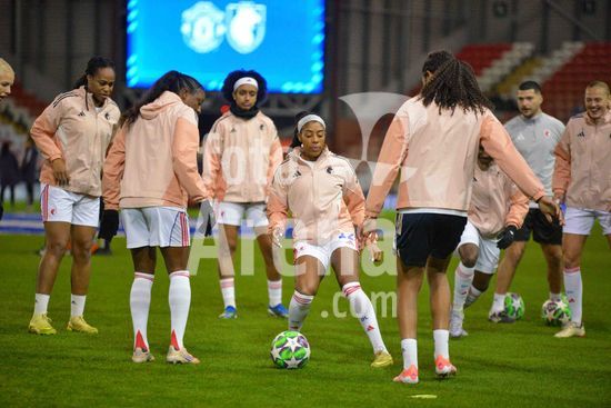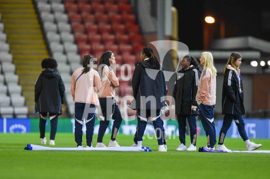 2857477 Jogadoras do OL Lyonnes caminhando pelo gramado antes da partida da UWCL entre Manchester United e OL Lyonnes no Progress with Unity Stadium, em Manchester, Inglaterra. (Clare Overfield / SPP)