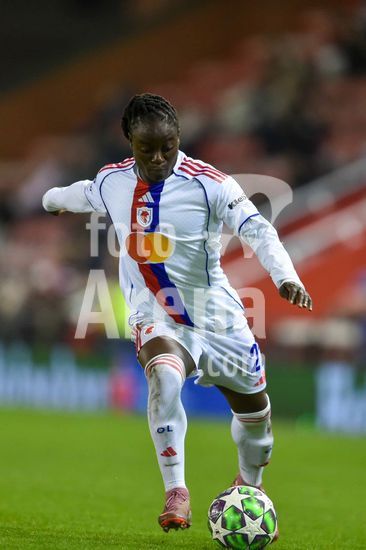 2857331 Tarciane (33 OL Lyonnes) dominando a bola durante a partida da UWCL entre Manchester United e OL Lyonnes no Progress with Unity Stadium, Manchester, Inglaterra. (Clare Overfield / SPP)