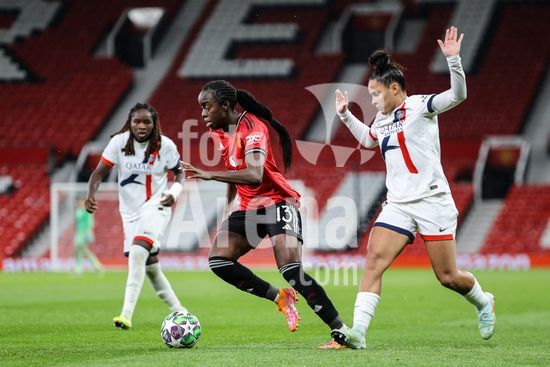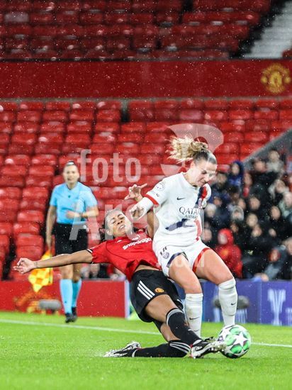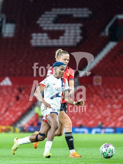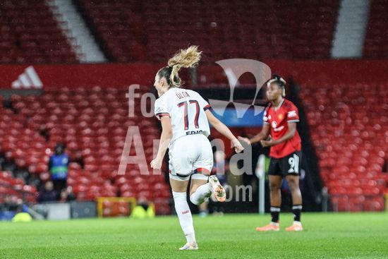 2842046 Jess Park (8 Manchester United) com a bola durante a partida da Liga dos Campeoes Feminina da UEFA entre Manchester United e Paris Saint-Germain em Old Trafford, Manchester, Inglaterra. (Natalie Mincher/SPP)