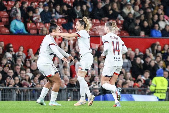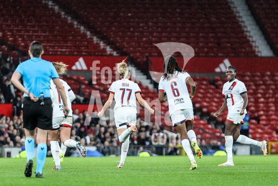 2842051 Manchester, Inglaterra, 12 de novembro de 2025: Olga Carmona (77 PSG) comemora o gol de empate durante a partida da Liga dos Campeoes Feminina da UEFA entre Manchester United e Paris Saint-Germain no Old Trafford em Manchester, Inglaterra. (Natalie Mincher/SPP)