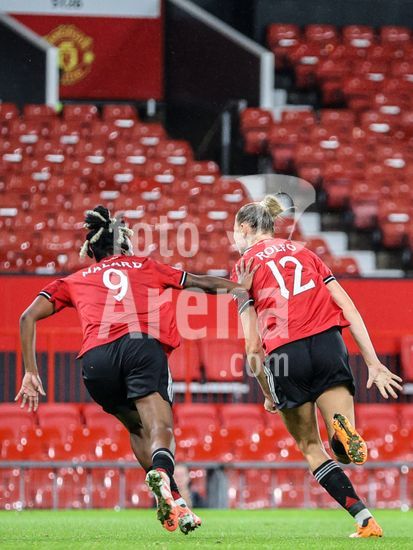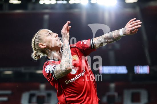 2842125 Manchester, Inglaterra, 12 de novembro de 2025: Fridolina Rolfo (12 Manchester United) comemora o gol da vitoria durante a partida da Liga dos Campeoes Feminina da UEFA entre Manchester United e Paris Saint-Germain em Old Trafford, Manchester, Inglaterra (Natalie Mincher/SPP) (Natalie Mincher/SPP)