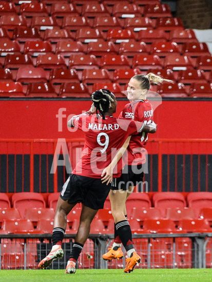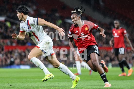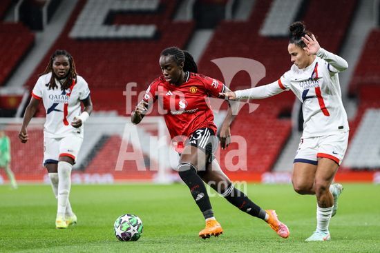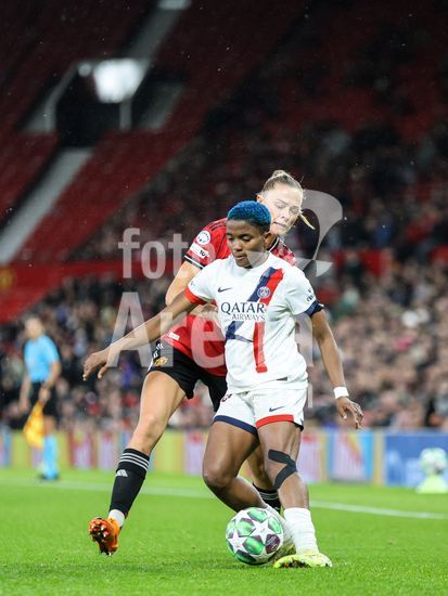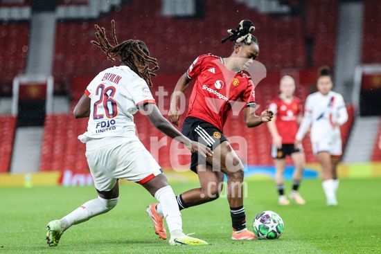 2842056 Manchester, Inglaterra, 12 de novembro de 2025: Melvine Malard (9 Manchester United) com a bola durante a partida da Liga dos Campeoes Feminina da UEFA entre Manchester United e Paris Saint-Germain no Old Trafford em Manchester, Inglaterra. (Natalie Mincher/SPP)