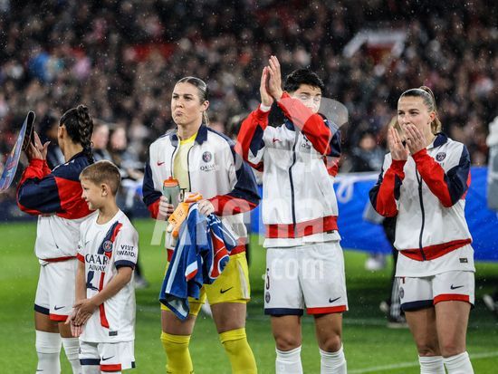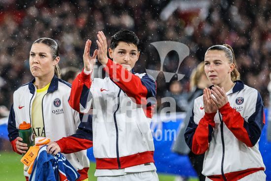 2842109 Manchester, Inglaterra, 12 de novembro de 2025: Jogadoras do PSG antes da partida da Liga dos Campeoes Feminina da UEFA entre Manchester United e Paris Saint-Germain no Old Trafford, em Manchester, Inglaterra. (Natalie Mincher/SPP)