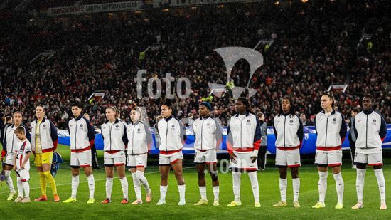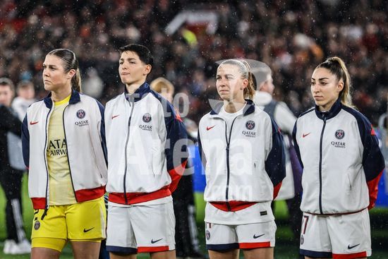 2842111 Manchester, Inglaterra, 12 de novembro de 2025: Jogadoras do PSG antes da partida da Liga dos Campeoes Feminina da UEFA entre Manchester United e Paris Saint-Germain no Old Trafford, em Manchester, Inglaterra. (Natalie Mincher/SPP)