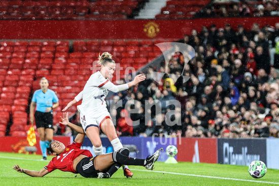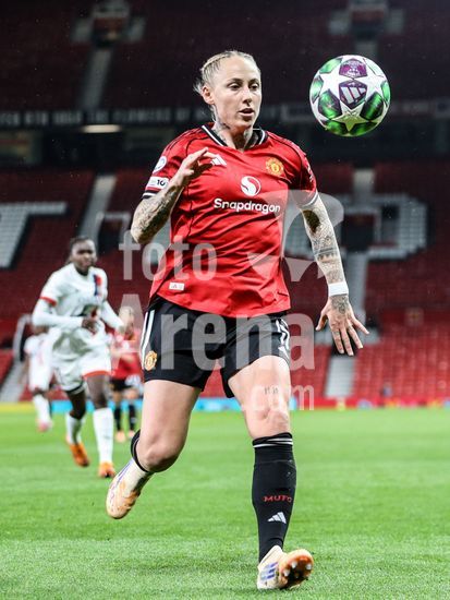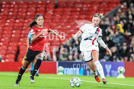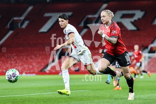 2842045 Jess Park (8 Manchester United) com a bola durante a partida da Liga dos Campeoes Feminina da UEFA entre Manchester United e Paris Saint-Germain em Old Trafford, Manchester, Inglaterra. (Natalie Mincher/SPP)
