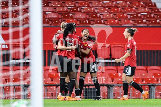 2842173 Manchester, Inglaterra, 12 de novembro de 2025: Fridolina Rolfo (12 Manchester United) comemora o gol da vitoria durante a partida da Liga dos Campeoes Feminina da UEFA entre Manchester United e Paris Saint-Germain em Old Trafford, Manchester, Inglaterra (Natalie Mincher/SPP) (Natalie Mincher/SPP)