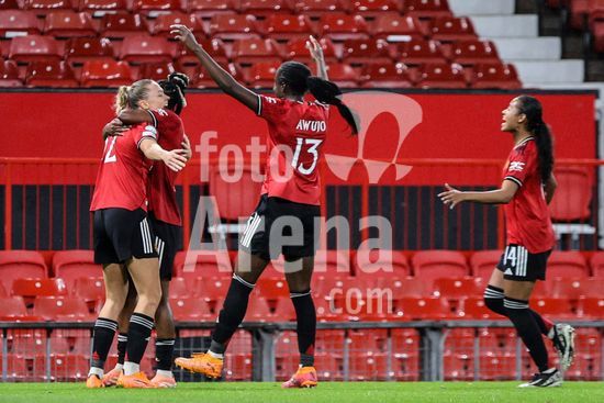 2842042 Manchester, Inglaterra, 12 de novembro de 2025: Fridolina Rolfo (12 Manchester United) comemora o gol da vitoria durante a partida da Liga dos Campeoes Feminina da UEFA entre Manchester United e Paris Saint-Germain em Old Trafford, Manchester, Inglaterra (Natalie Mincher/SPP) (Natalie Mincher/SPP)