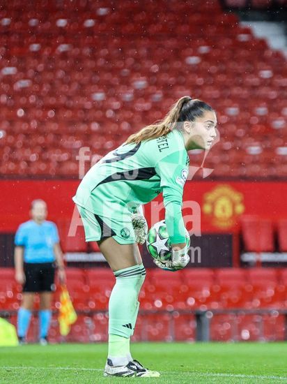 2842139 Manchester, Inglaterra, 12 de novembro de 2025: A goleira Safia Middleton-Patel (39 Manchester United) em acao durante a partida da Liga dos Campeoes Feminina da UEFA entre Manchester United e Paris Saint-Germain no Old Trafford em Manchester, Inglaterra. (Natalie Mincher/SPP)