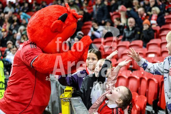 2842106 Manchester, Inglaterra, 12 de novembro de 2025: Mascote durante a partida da Liga dos Campeoes Feminina da UEFA entre Manchester United e Paris Saint-Germain no Old Trafford em Manchester, Inglaterra. (Natalie Mincher/SPP)