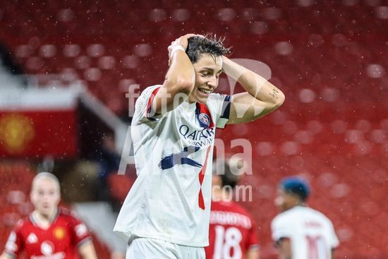 2842137 Manchester, Inglaterra, 12 de novembro de 2025: Elisa De Almeida (5 PSG) apos uma chance perdida durante a partida da Liga dos Campeoes Feminina da UEFA entre Manchester United e Paris Saint-Germain em Old Trafford, Manchester, Inglaterra. (Natalie Mincher/SPP)