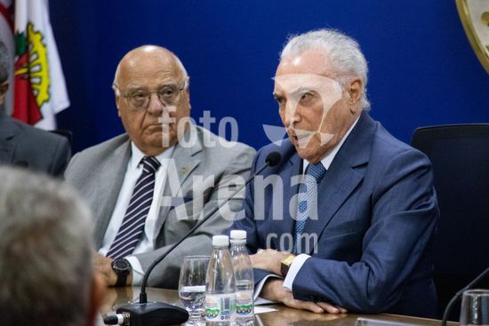 2881381 O ex-presidente Michel Temer fala sobre o tema ?Brasil, Cenário Nacional e Internacional? em reunião realizada na Associação Comercial de São Paulo (ACSP) na manhã desta segunda-feira (09) em São Paulo, SP. Na foto, o secretário estadual Gilberto Kassab.
