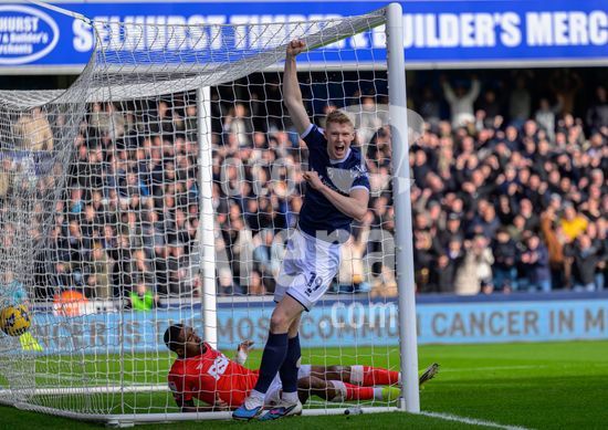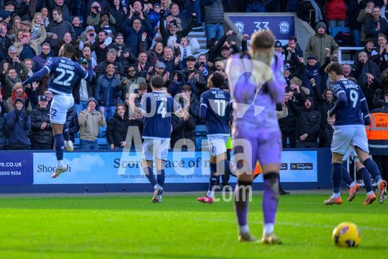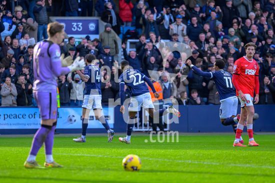 2872996 Caleb Taylor (6 Millwall) marca o terceiro gol da equipe, fazendo o placar de 3 a 0 durante o jogo do Sky Bet Championship entre Millwall FC e Charlton Athletic no The Den, em Londres, Inglaterra. (Keeran Marquis/SPP)