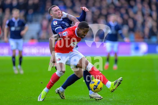 2872842 Joe Rankin-Costello (26 Charlton Athletic) e Caleb Taylor (6 Millwall) durante o jogo do Sky Bet Championship entre Millwall FC e Charlton Athletic no The Den em Londres, Inglaterra. (Keeran Marquis/SPP)