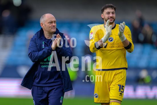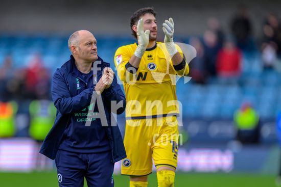 2872912 O treinador do Millwall, Alex Neil, e Max Crocombe (15 Millwall) aplaudem os torcedores apos a vitoria do Millwall FC sobre o Charlton Athletic no jogo do Sky Bet Championship, no The Den, em Londres, Inglaterra. (Keeran Marquis/Sports Press Photo/SPP)