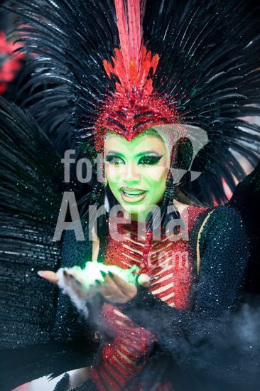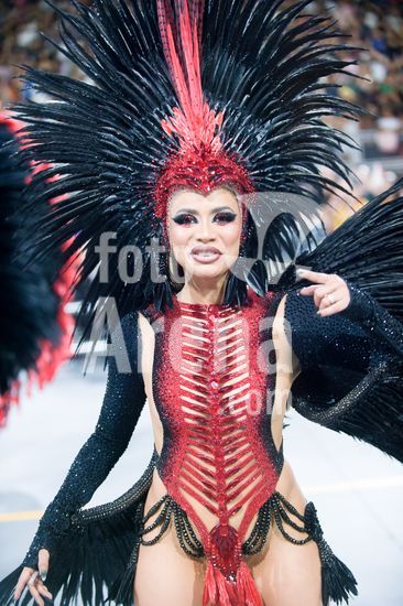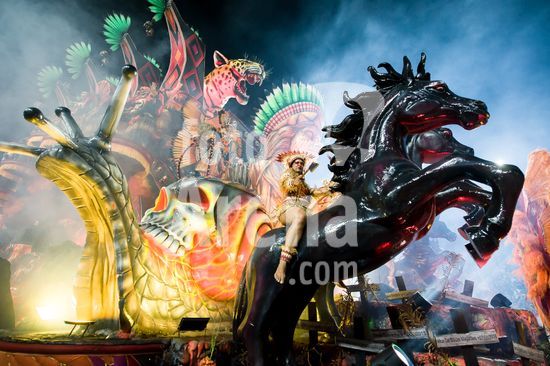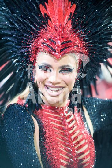 2884301 As escolas de samba desfilam no Sambódromo do Anhembi nesta sexta-feira (13), em São Paulo. Na foto, Dragões da Real, com a Rainha de bateria: Karine Grum.