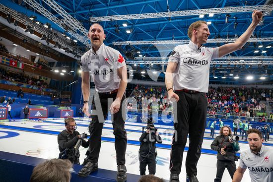 ny210226200012 Ben Hebert and Brett Gallant, of Canada, celebrate their victory over Great Britain during the gold medal match in men's curling at the 2026 Milan Cortina Winter Olympics in Cortina d?Ampezzo, Italy, Feb. 21, 2026. (James Hill/The New York Times/Fotoarena)