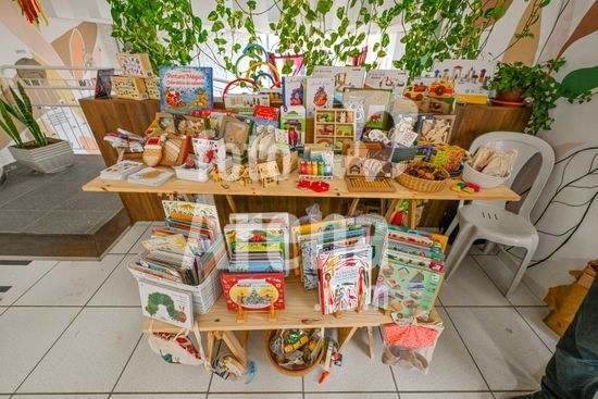 2839606 Mukua Jardim de Infancia que usa o metodo Waldorlf realizou nas dependencias da escola um Bazar de Natal com expositores locais comidas e livros .