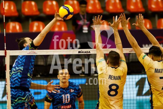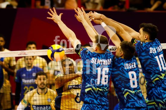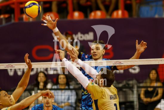 2861183 Mundial de clubes de vôlei masculino na Arena Guilherme Paraense em Belém no Pará. Jogo Sir Sicoma Monini Perugia (azul) x Volei Renata (amarelo) partida válida pelas semifinais. O Perugia, da Itália, venceu por três sets a zero e enfrenta o Osaka na final