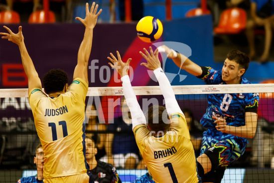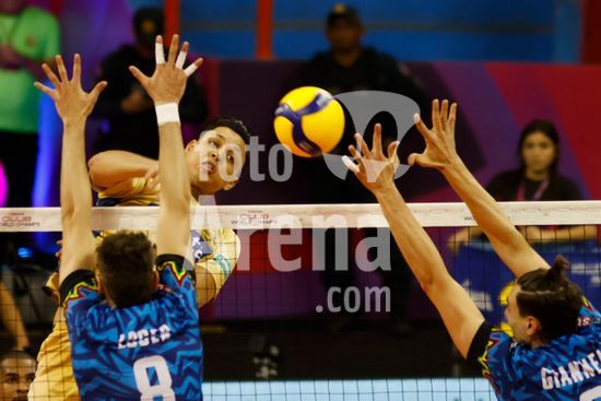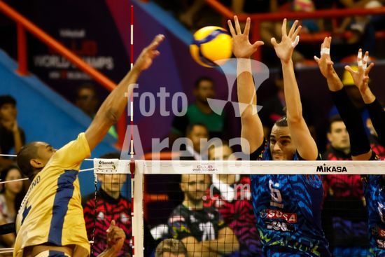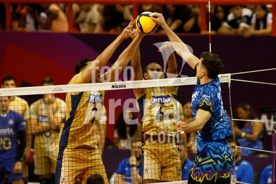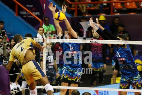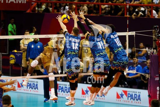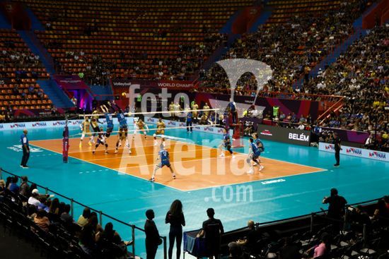 2861187 Mundial de clubes de vôlei masculino na Arena Guilherme Paraense em Belém no Pará. Jogo Sir Sicoma Monini Perugia (azul) x Volei Renata (amarelo) partida válida pelas semifinais. O Perugia, da Itália, venceu por três sets a zero e enfrenta o Osaka na final