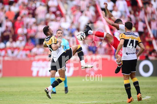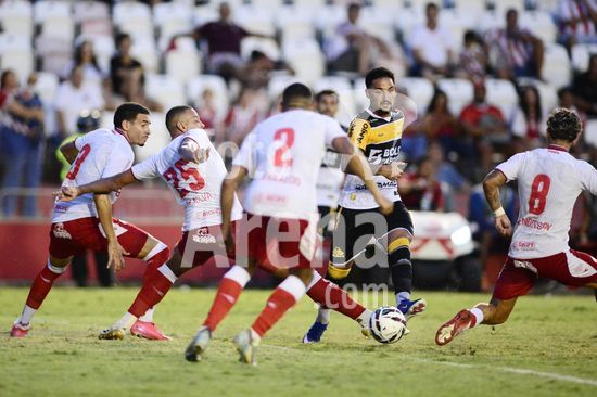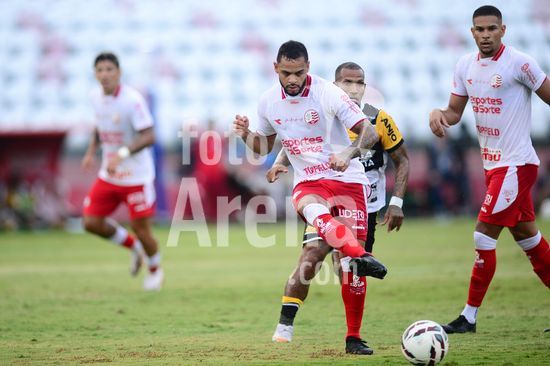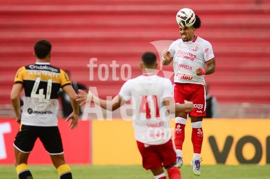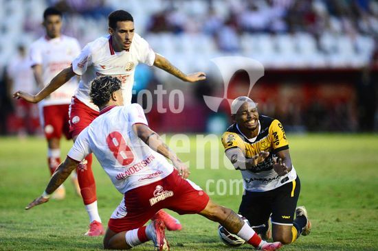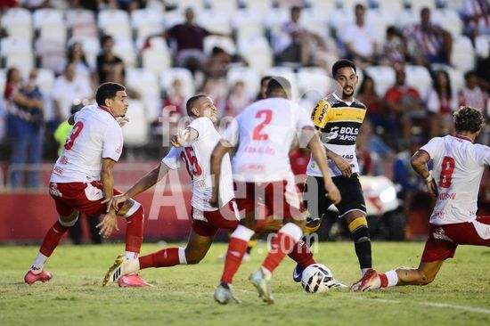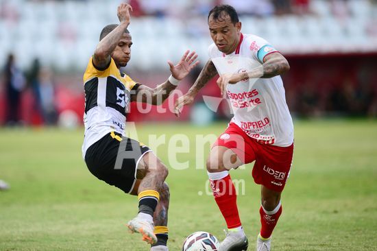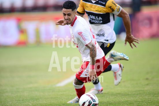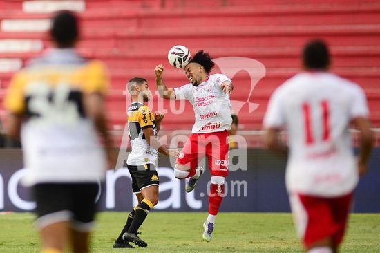 Zagueiro Mateus Silva (Náutico - esquerda) e atacante Waguininho (Criciúma - direita - com a bola) durante o jogo entre Náutico X Criciúma, válido pela primeira rodada do Campeonato Brasileiro de Futebol da série B 2026, disputado no Estádio Eládio de Barros Carvalho, conhecido como Estádio dos Aflitos, em Recife (PE), Brasil, neste domingo (22).