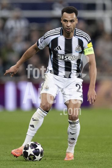 NEWCASTLE UPON TYNE, INGLATERRA - 24 DE FEVEREIRO: Nick Woltemade, do Newcastle United, e Marko Jankovic, do Qarabag, disputam a posse de bola durante a partida da Liga dos Campeoes da UEFA 2025/26 entre Newcastle United e Qarabag, no St James Park, em Newcastle, Inglaterra. (Will Palmer/SPP)